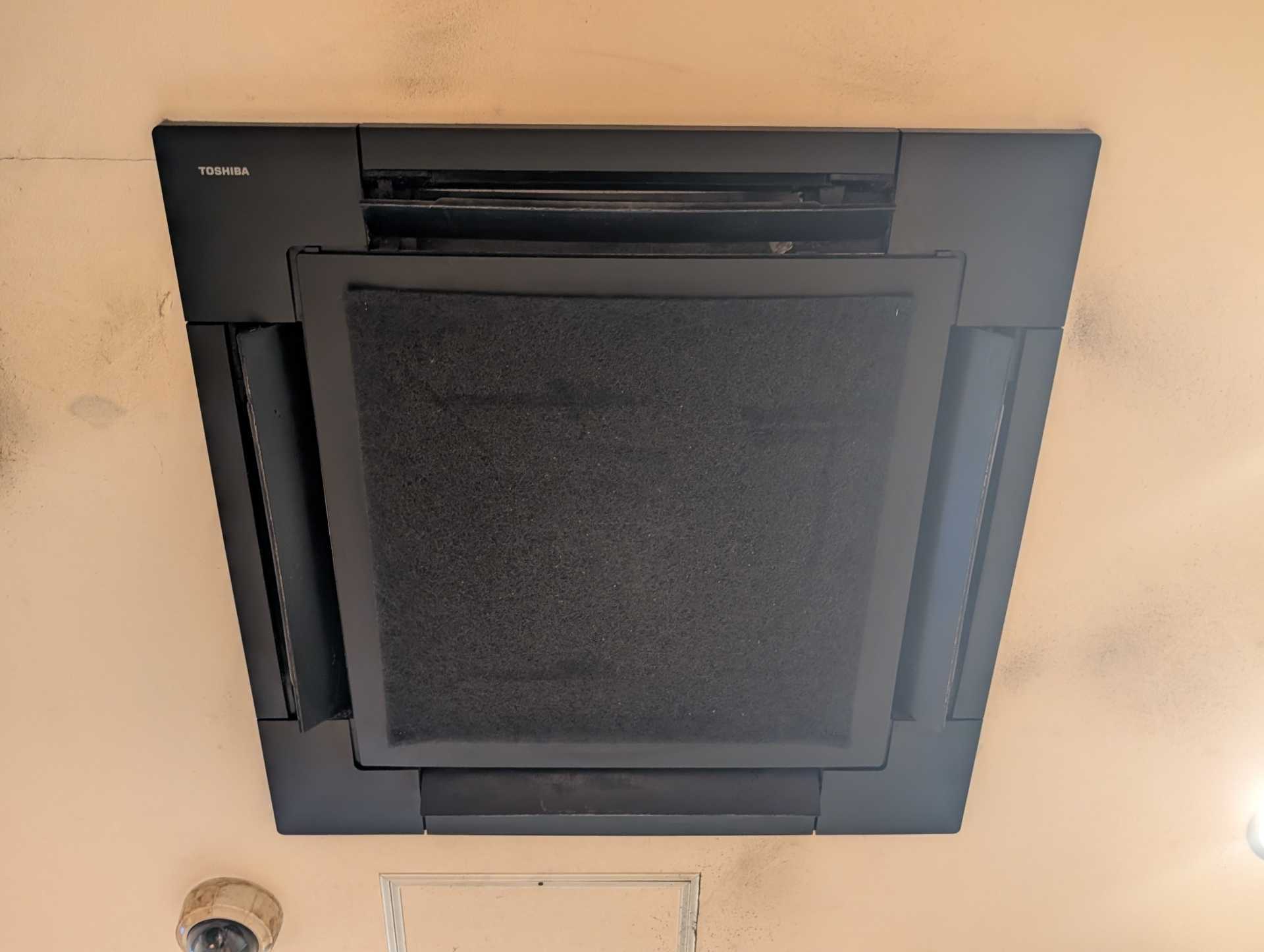 エアコンのフィルタ定期清掃(水洗い清掃)を従業員で実施していたが