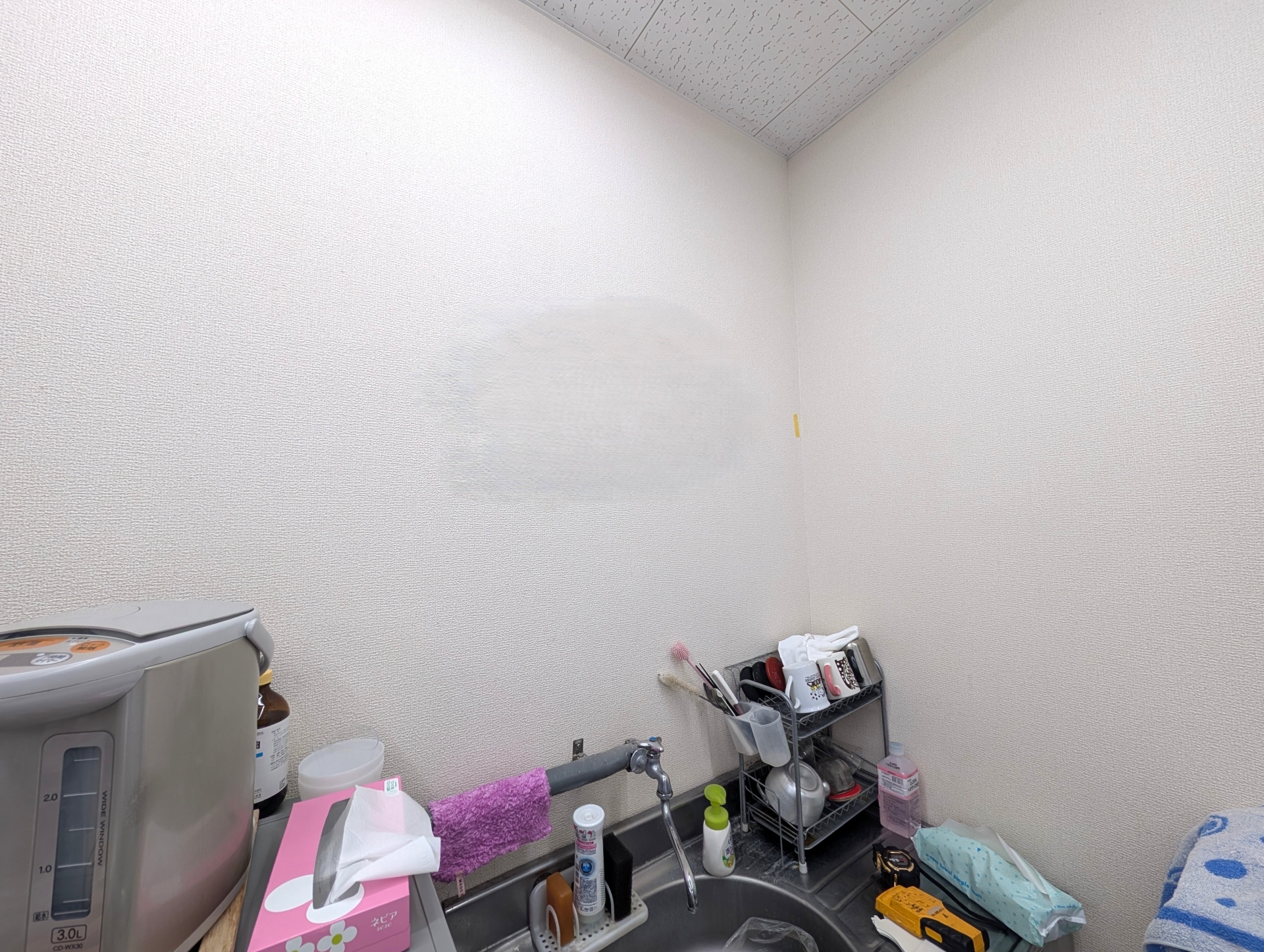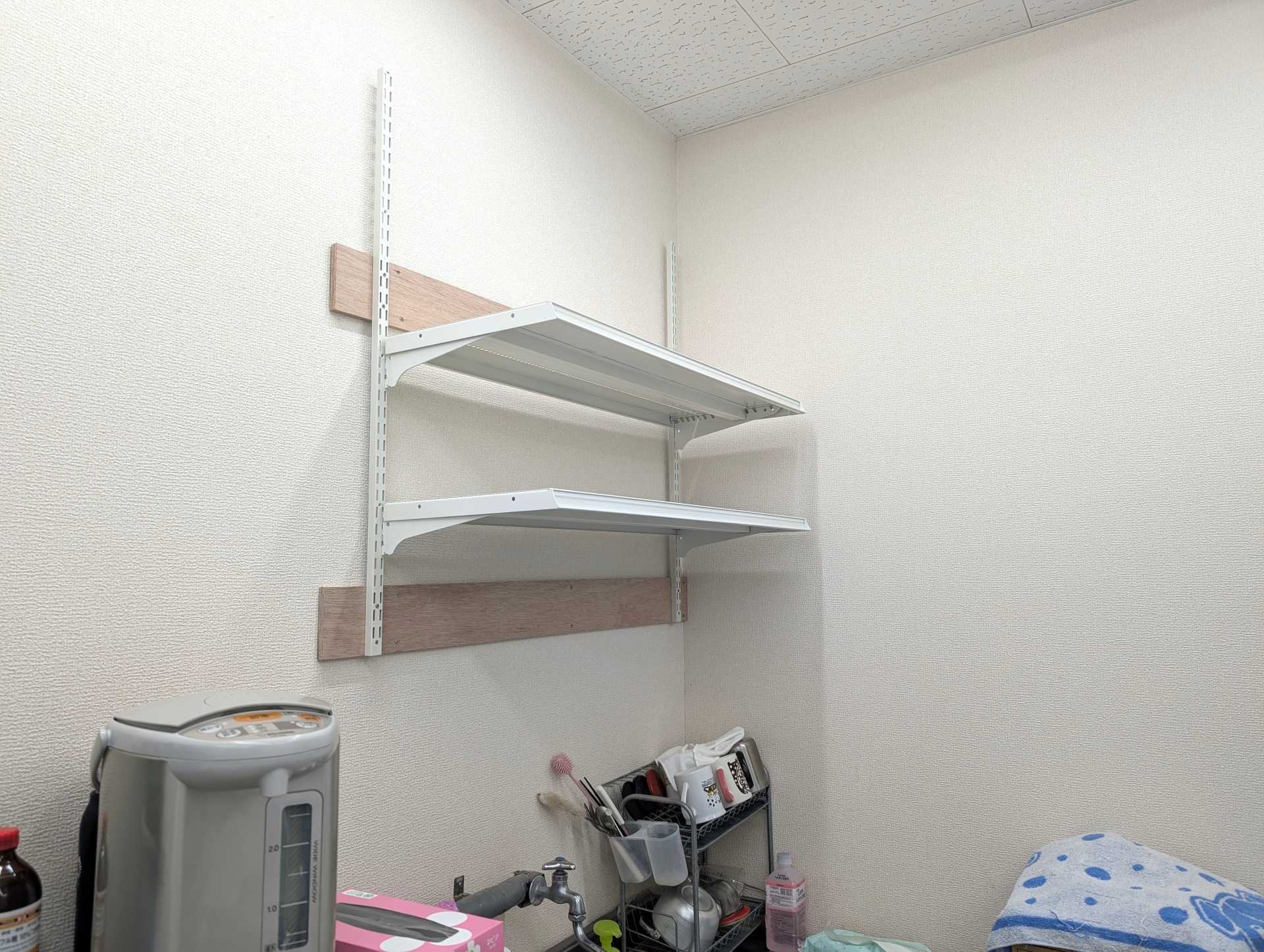 壁面にスリット柱を設置し、壁面上部を薬品保管スペースとして活用できるようにご提案し設置いたしました。