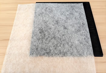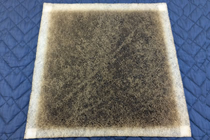 直火調理を行っている店内の為、約2ヶ月で写真のような油分や塵埃の捕集効果が見られます。